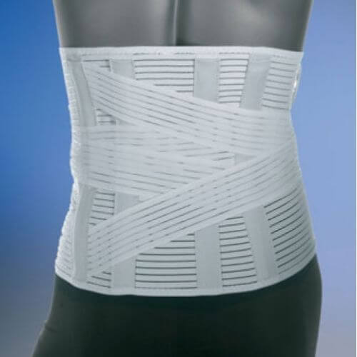 Il corsetto è un modello Alto che ha un design anatomico e sagomato, con fascie incrociate regolabili, così da permettere un adattamento individuale