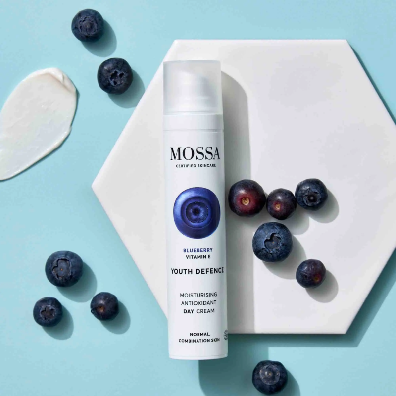 Crema giorno idratante arricchita con mirtillo e vitamina E.