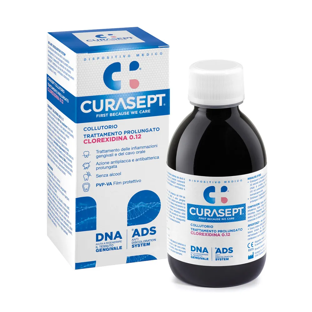 La Clorexidina digluconato 0,12% assicura anche un’efficace azione antisettica. Le frazioni di DNA aumentano la viscosità delle soluzioni e l’idratazione delle mucose. Il sistema ADS interferisce con due dei principali meccanismi della pigmentazione. Il PVP-VA copolymer forma una pellicola protettiva sui denti e sulle gengive.