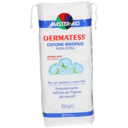 Ovatta di cotone idrofilo per uso sanitario e dermatologico costituita da fibre di cotone accuratamente pulite e cardate.