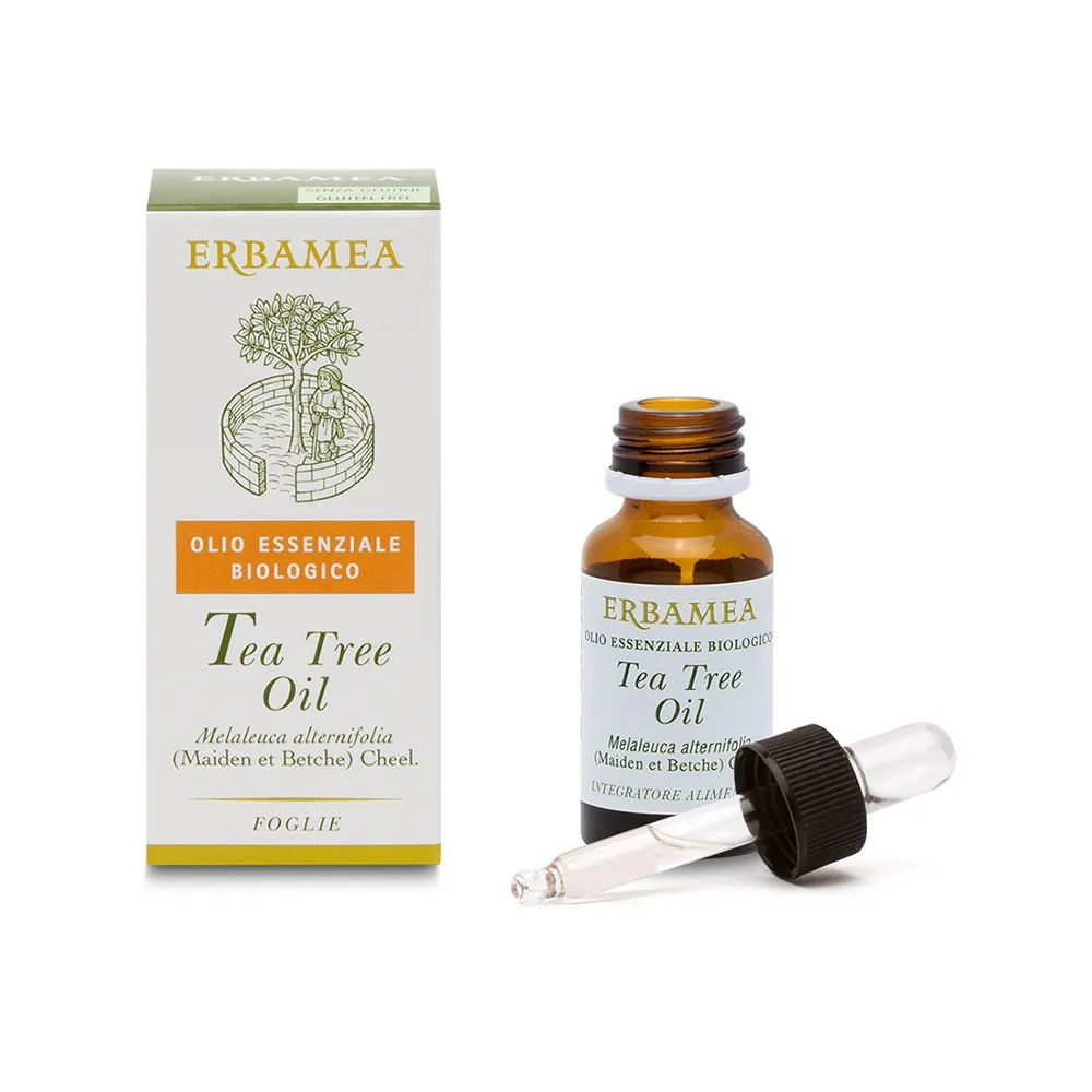 Olio di meleleuca, noto anche come Tea Tree Oil. Ha un’azione disinfettante, antibatterica, antinfiammatoria e idratante sulla pelle.