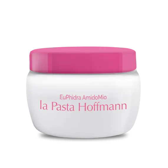 La PASTA HOFFMANN AmidoMio è un preparato cosmetico ideale per proteggere la pelle sensibile del bambino e del neonato soggetta ad irritazioni causate da sudore, eccessiva salivazione, ristagno di urina e feci e sfregamenti di tipo meccanico.