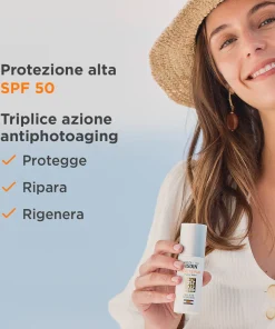 Protezione solare ultraleggera per uso quotidiano che apporta un’idratazione intensa, assorbimento immediato e una triplice azione antiphotoaging. Protegge la pelle dal sole e dall’inquinamento, ripara il danno solare accumulato a livello cellulare e contrasta i segni visibili dell’età