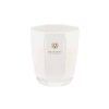 Un bicchiere sabbiato con inciso il logo Carthusia racchiude al suo interno una candela profumatissima alla fragranza Frutto di bacco, ideale per profumare ogni angolo della casa.