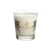 Un bicchiere sabbiato con inciso il logo Carthusia racchiude al suo interno una candela profumatissima alla fragranza