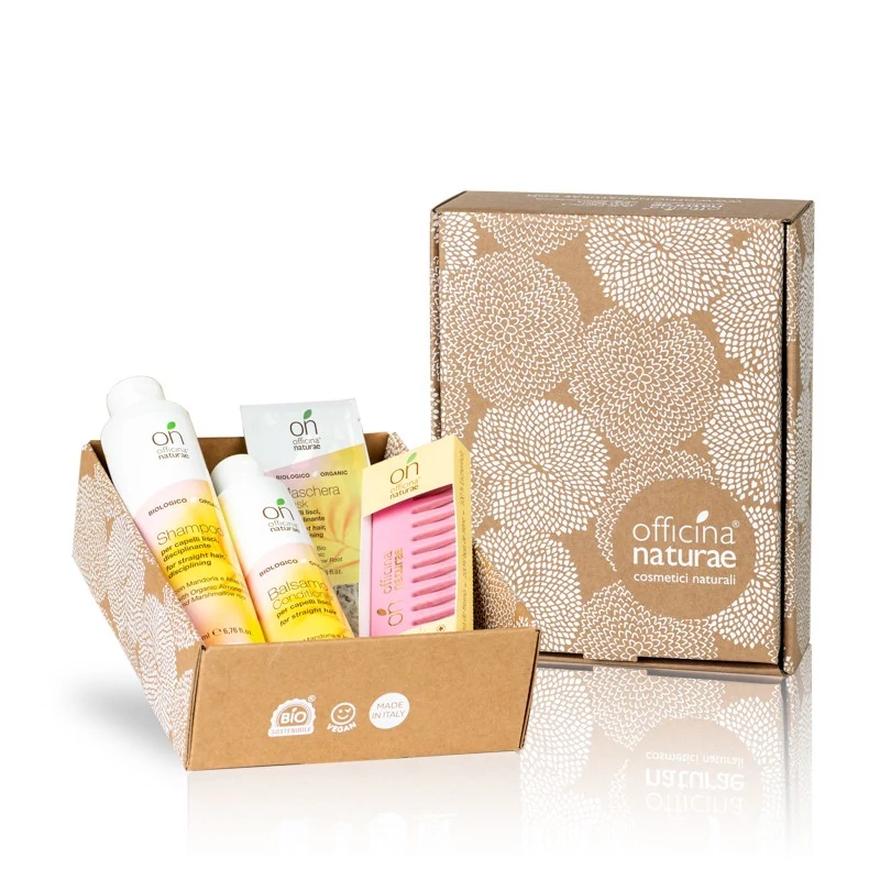 Qual è il regalo più ambito da chi desidera capelli liscissimi? Ovviamente un set di prodotti che tengano a bada anche le chiome più ribelli, meglio ancora se prodotti naturali e sostenibili… un sogno? No, c’è la Gift Box Vai Col Liscio della linea onYOU Officina Naturae! Una “scatola magica”, da cui si sprigiona non quella musica che tanto piace a noi romagnoli, ma la forza di tre prodotti per ottenere un liscio perfetto, più un utilissimo accessorio: Shampoo per Capelli Lisci, Disciplinante (full size) Balsamo per Capelli Lisci (full size) Pettine in Legno Maschera Capelli Lisci, Disciplinante (campioncino) Scatola Small Se ami i capelli lisci o vuoi fare un regalo azzeccato per chi li cura con amore, questa box è perfetta, perché sostiene anche l’amore per il Pianeta! Shampoo e balsamo, sono, infatti in un flacone in speciale plastica riciclata post consumo, sicura per la salute e l’ambiente! Il pettine, poi si rivelerà uno strumento ecologico e utile per pettinare dolcemente e domare la chioma! COME UTILIZZARE IL PRODOTTO La Gift Box Vai col Liscio racchiude, in pratica, tutto ciò che serve per una hair care routine d’effetto: basta poco shampoo per lavare i capelli con una soffice schiuma, che li coccola senza seccarli e senza irritare (non contiene solfati, quindi è meno aggressivo di altri shampoo); poi, dopo il lavaggio, una noce di balsamo, ben distribuita sulle punte e sulle lunghezze, farà il resto, senza appesantire come fanno i balsami con siliconi. La maschera, poi, è un’alternativa allo shampoo che, però diventa d’obbligo se i capelli hanno bisogno di un trattamento che dia loro maggior nutrimento e protezione. Una volta provata, la full size della Maschera Capelli Lisci, Disciplinante è disponibile sul nostro shop, per la completa hair care routine!