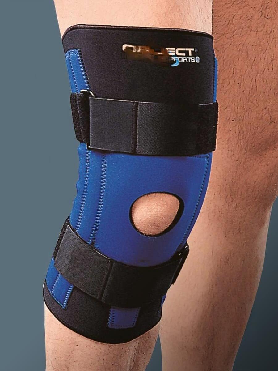 Ginocchiera tubolare in neoprene con stecche a spirale e stabilizzatore rotuleo