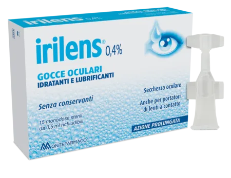 Irilens 0,4% gocce oculari è una soluzione oftalmica sterile, priva di conservanti ad effetto idratante e lubrificante, contenente acido ialuronico sale sodico allo 0,4% di origine biotecnologica ad alto peso molecolare.