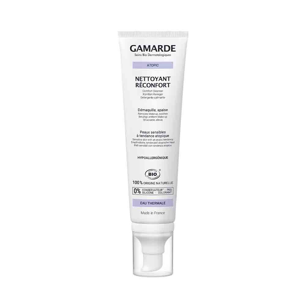Un latte detergente che deterge e lenisce la pelle sensibile con tendenza atopica. Rimuove trucco e impurità. La sua esclusiva texture, un mix tra acqua e latte, lenisce i rossori e le irritazioni rispettando l’equilibrio cutaneo.Testato sotto controllo dermatologico.