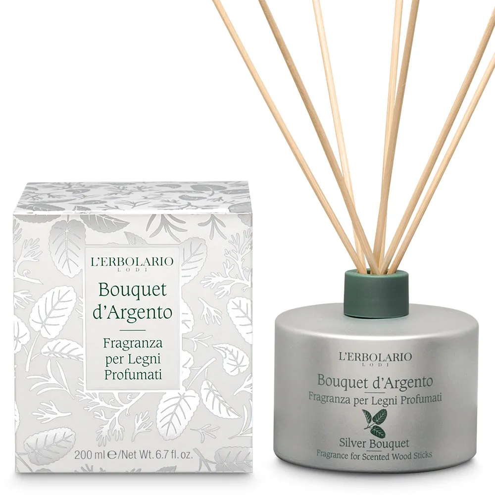 Ricco di incantevole malia e di misteriosa bellezza è l’argento, che scintilla come un’elegante danza di luce. Sarà semplice riscoprirne il fascino, nella quotidianità, con questa Fragranza per Legni Profumati, pregevole oggetto d’arredo ed efficace profumatore d’ambienti, in grado di assicurare ogni giorno una fragrante atmosfera nelle stanze di casa o in ufficio.