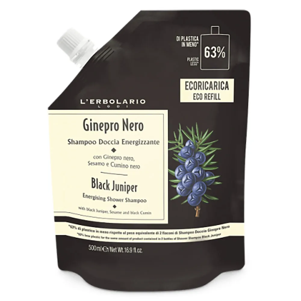 Il Bagnoschiuma Ecoricarica Ginepro Nero dell’Erbolario è un detergente per corpo e capelli dalle note legnose e agrumate. Senza siliconi, parabeni, tensioattivi solfati e petrolati.
