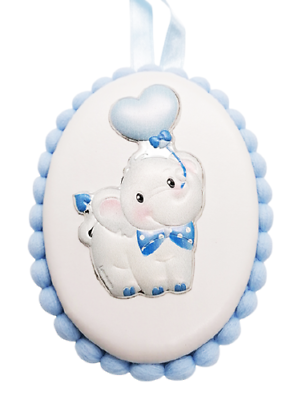Medaglione Capoculla In Argento Elefante Blu Bimbo Con Suoneria Ninna Nanna