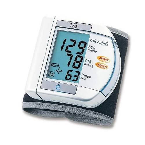 Misuratore di pressione automatico da polso con tecnologia PAD (Pulse Arrhytmya Detection) e MAM (Microlife Average Mode).