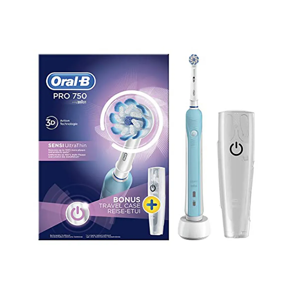 Dotato di timer professionale, lo spazzolino elettrico PRO 750 ti aiuta a spazzolare i denti per il tempo consigliato dai dentisti, pari a 2 minuti. Grazie ad un avviso ogni 30 secondi, saprai sempre quando è il momento di passare all’area successiva. Spazzola i tuoi denti. L’esclusiva testina arrotondata di Oral-B penserà al resto. Rimuove fino al 100% di placca in più rispetto ad uno spazzolino manuale tradizionale, per delle gengive più sane. Inoltre, agisce sulle macchie superficiali eliminandole, per un sorriso più bianco sin dal primo giorno. Oral-B PRO 750 con timer professionale è la scelta ideale per tutti coloro che desiderano passare ad uno spazzolino elettrico. Non a caso Oral-B è la marca di spazzolini più usata dai dentisti nel mondo. Lo spazzolino elettrico ricaricabile Oral-B PRO 750 è compatibile con le seguenti testine di ricambio per spazzolini elettrici: CrossAction, 3DWhite, Sensi Ultrathin, Sensitive Clean, Precision Clean, Floss Action, TriZone, Dual Clean, Power Tip e Ortho.