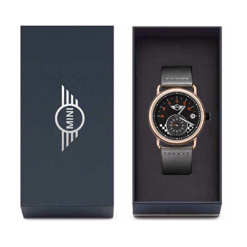 Orologio Uomo MINI COOPER BMW In Pelle Nera Cassa Acciaio 40mm Placcato Oro Rosa