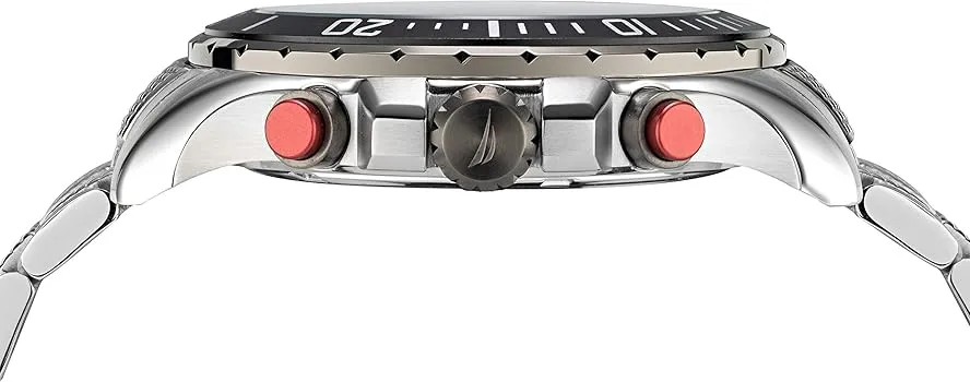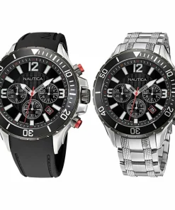 OROLOGIO UOMO FIRMATO NAUTICA, DESIGN ITALIANO, MOVIMENTO CRONOGRAFO AL QUARZO CON DATARIO, CASSA IN ACCIAIO INOSSIDABILE OVERSIZE 48mm – CONFEZIONE CON DOPPIO CINTURINO ACCIAIO / GOMMA – WR 100 mt – CACCIAVITE OMAGGIO NELLA CONFEZIONE