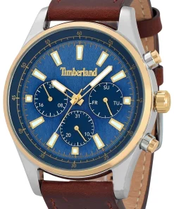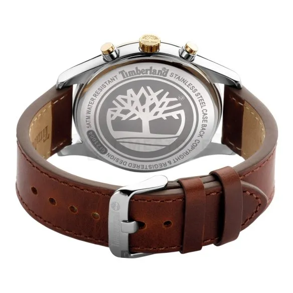 Orologio Uomo Timberland Multifunzione Cinturino Pelle Cassa Acciaio Lunetta Oro