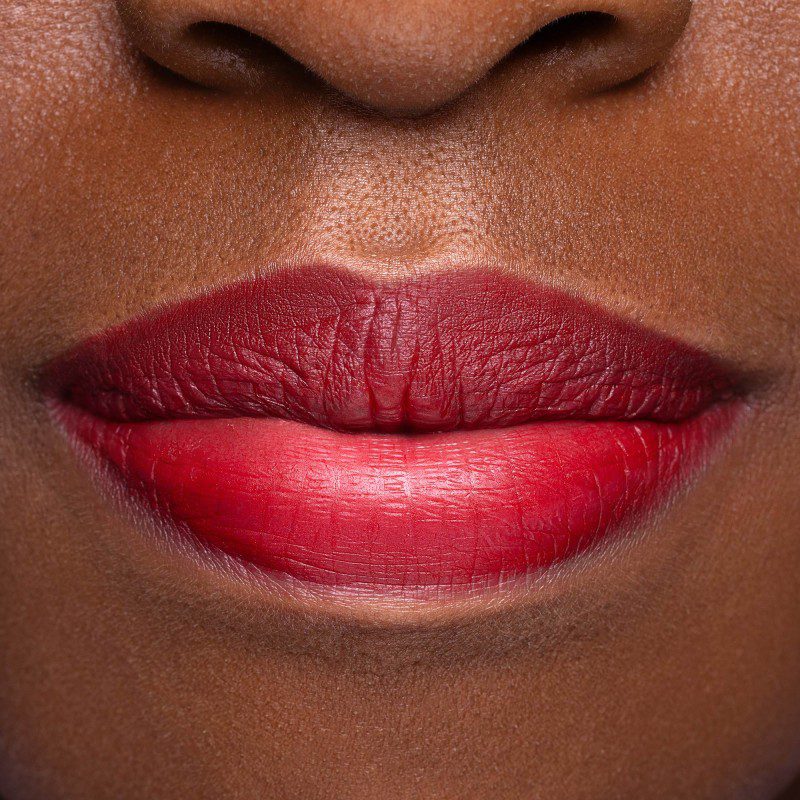 Il cremisi freddo più intenso e brillante, risalta sulle labbra come mele rosse in un giardino innevato.