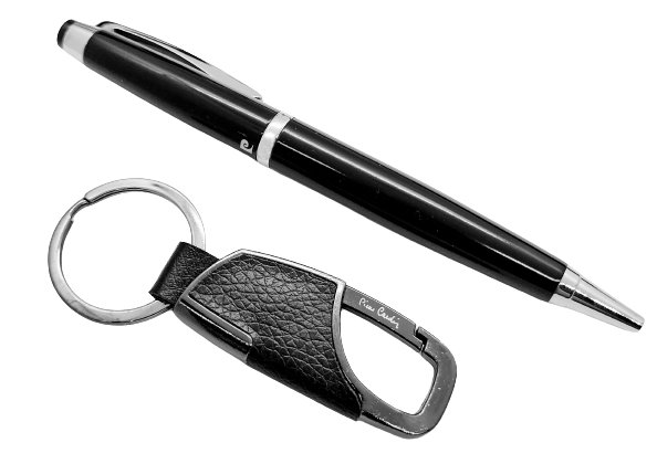 Penna a Sfera Pierre Cardin In Resina Nera e Acciaio Set Regalo + Portachiavi