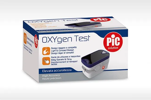 Pic OXYgen Test è protetto da una pratica custodia contenente anche un comodo cordino da polso e 2 batterie AAA incluse.