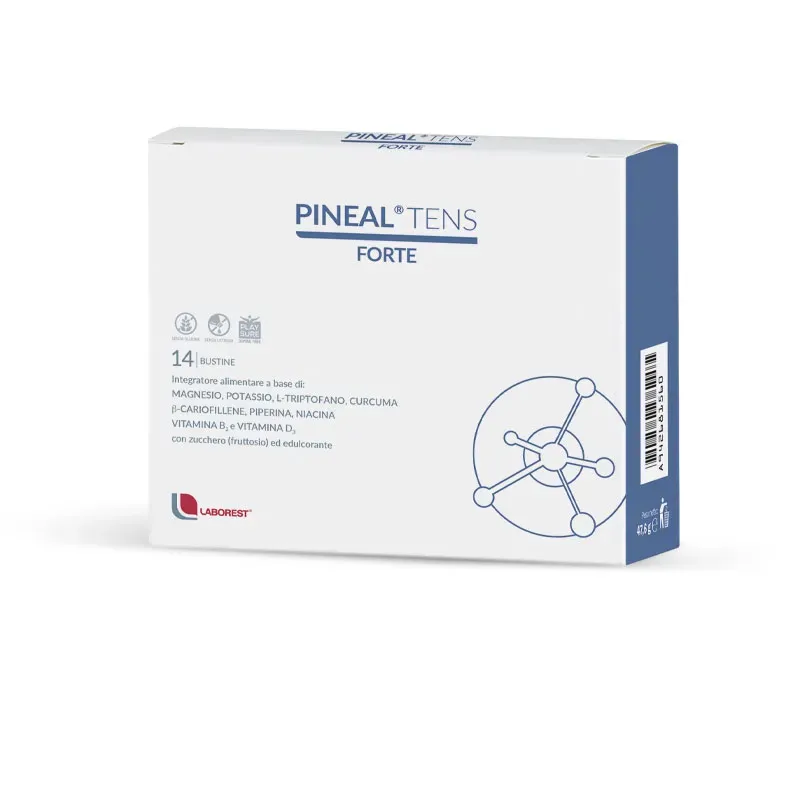 Integratore alimentare di magnesio bisglicinato, potassio, L-triptofano, curcuma, betta-cariofillene e piperina, con niacina, vitamina B2 e vitamina D3.