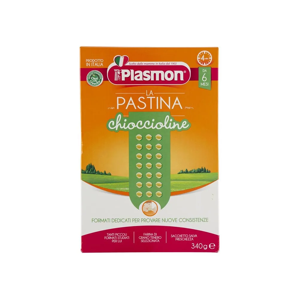 Le Pastine Chioccioline Plasmon sono ideali per i suoi primi dentini grazie alla morbidezza del grano tenero che lo incoraggia a masticare; sono inoltre arricchite con calcio, ferro e vitamine del gruppo B.