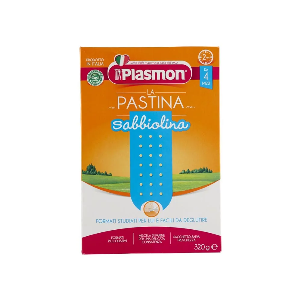 La Pastina Sabbiolina Plasmon è facile da deglutire ed è ideale per introdurre il tuo bambino nel mondo della masticazione, grazie alle sue piccolissime dimensioni. Il prodotto è una pasta di cereali a base farinacea che deve essere consumata dopo cotta in acqua bollente o altro liquido appropriato. Il prodotto può essere utilizzato dal quarto mese d’età salvo diverso parere del Pediatra.