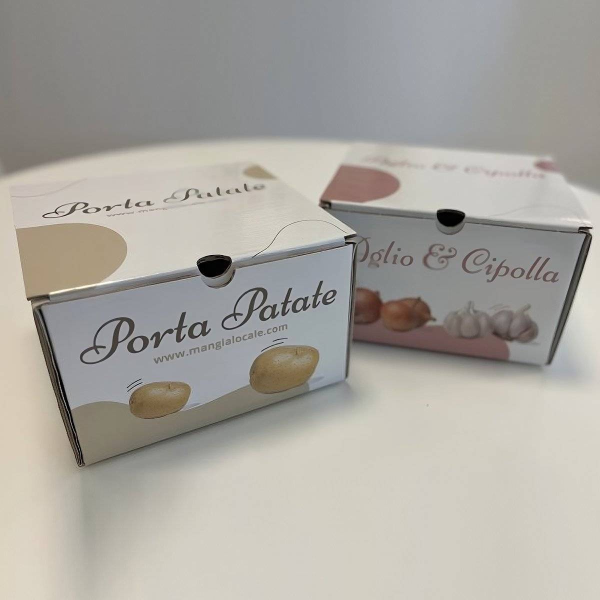 Una scatola studiata per garantire sia alle patate, sia alle cipolle (e agli), un ambiente buio ma anche arieggiato: questo grazie alla presenza di una serie di fori che permettono il ricambio dell’aria senza lasciare entrare la luce.
