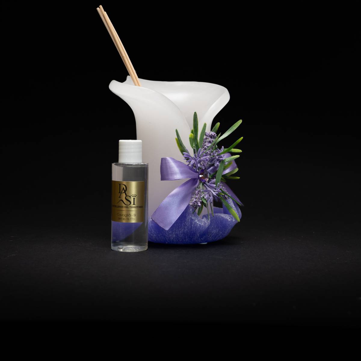 Completo di bastoncini assorbenti per diffondere l’aroma e bottiglietta contenente la fragranza ricavata dal nostro olio essenziale puro.