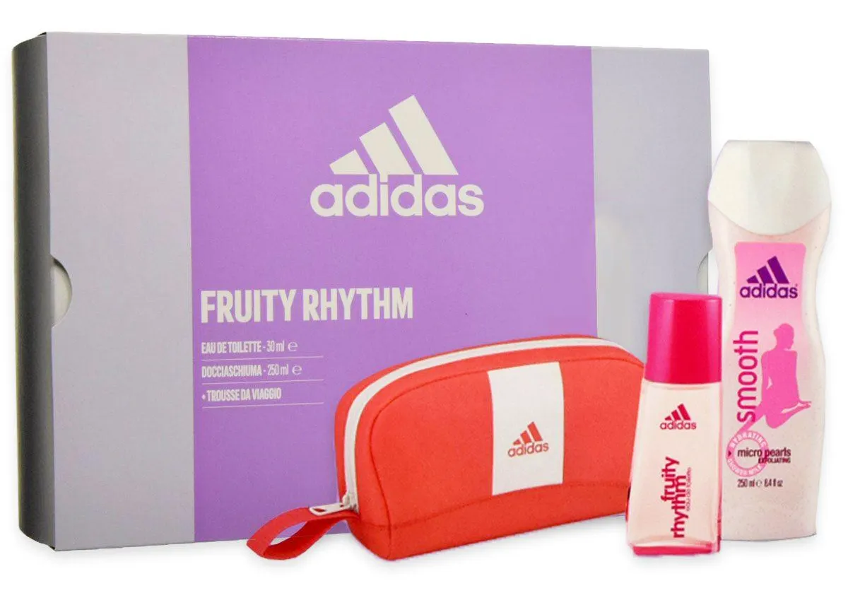 SET REGALO DONNA ADIDAS FRUITY RHYTHM CON EAU DE TOILETTE 30ml NATURAL SPRAY VAPORISATEUR + GEL DOCCIA ESFOLIANTE 250ml + COMODA POCHETTE DA PORTARE SEMPRE CON TE