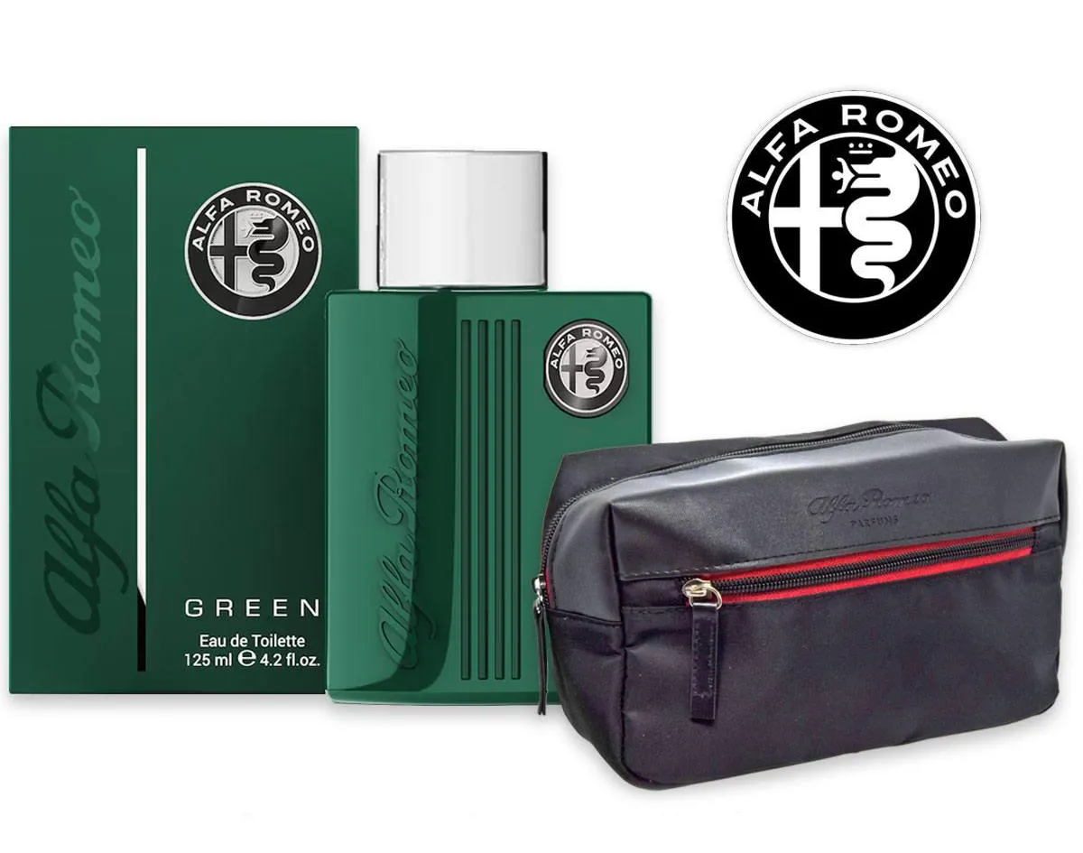 Profumo Uomo Alfa Romeo Green Set Edt 125ml Made in Italy + Borsello Pochette