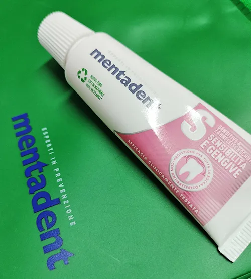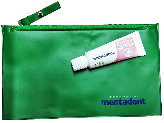 DENTIFRICIO MENTADENT SENSIBILITA’ e GENGIVE 16ml+ POCHETTE DA VIAGGIO IN GOMMA VERDE 20 x 12 centimetri