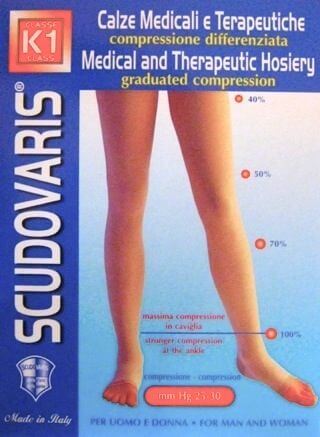 Calza autoreggente medicale e terapeutica in classe 1° (K1) Scudovaris, con indice di compressione 25-30 mm/Hg