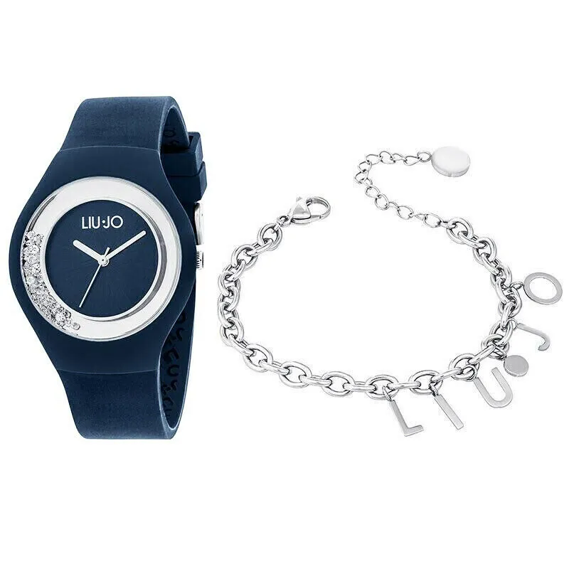 Set Liu Jo Milano Orologio Donna Silicone Blu Con Cristalli + Bracciale Acciaio