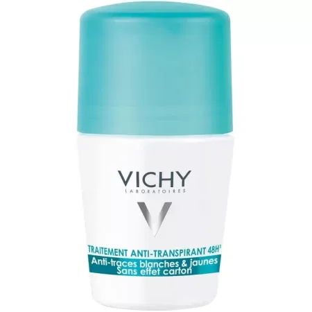 Deodorante antitraspirante roll-on che combatte il sudore per 48 ore ed evita la formazione di tracce bianche o gialle sui vestiti.