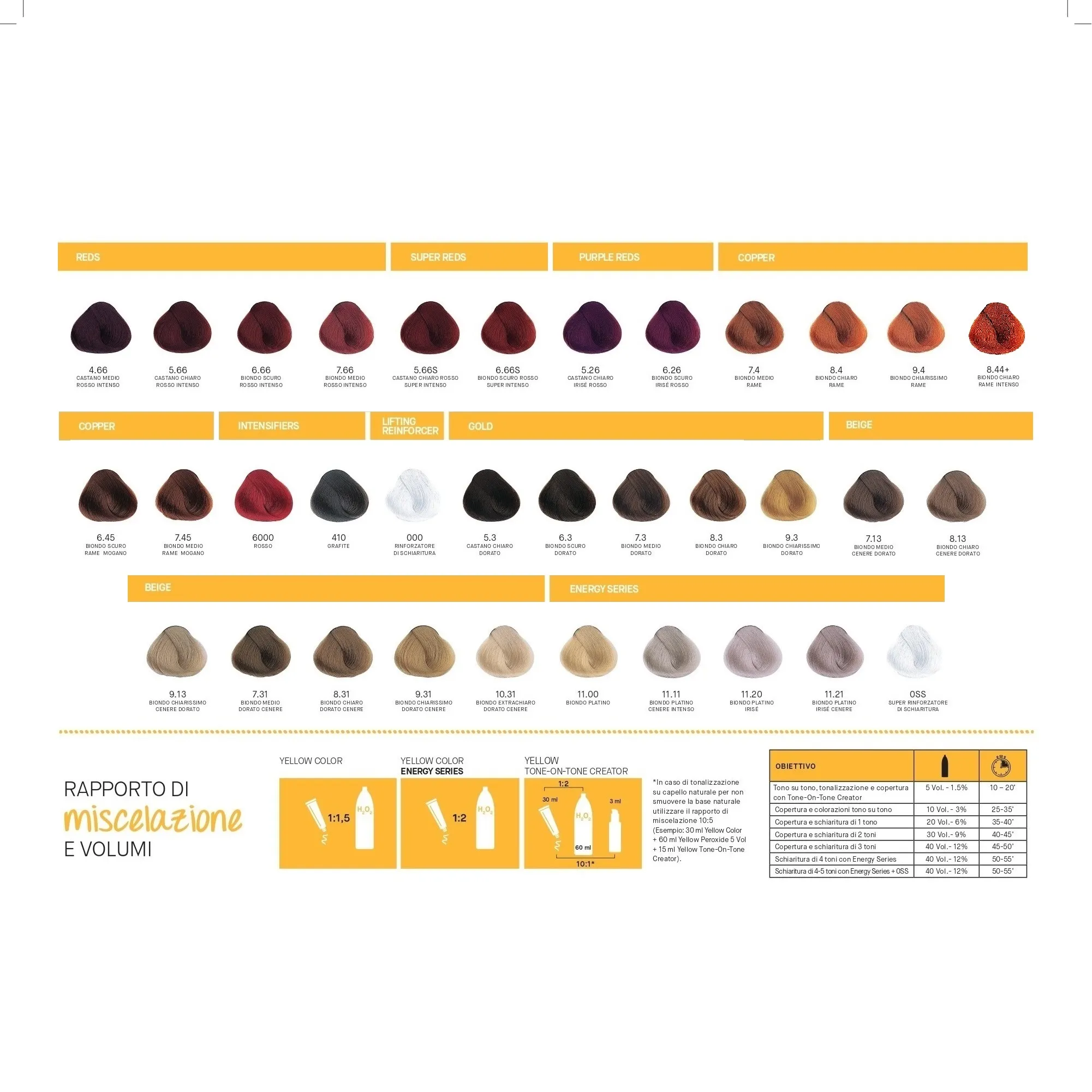 Rapporto di miscelazione Color-Peroxide: 1:1,5 (1:2 per le nuance della energy series)