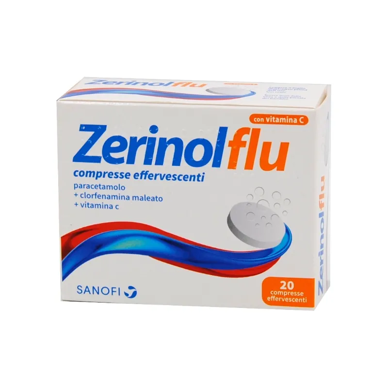 Posologia. Adulti: 1 compressa effervescente due volte al giorno. Popolazione pediatrica: la sicurezza e l’efficacia di Zerinolflu in pazienti di età inferiore a 18 anni non è stata stabilita. Modo di somministrazione: Uso orale. La compressa effervescente deve essere disciolta in circa mezzo bicchiere d’acqua. Il medicinale deve essere assunto dopo i pasti. Durata del trattamento: I pazienti devono essere avvertiti di contattare il medico se la febbre persiste o i sintomi non migliorano dopo 3 giorni di trattamento (vedere paragrafo 4.4).